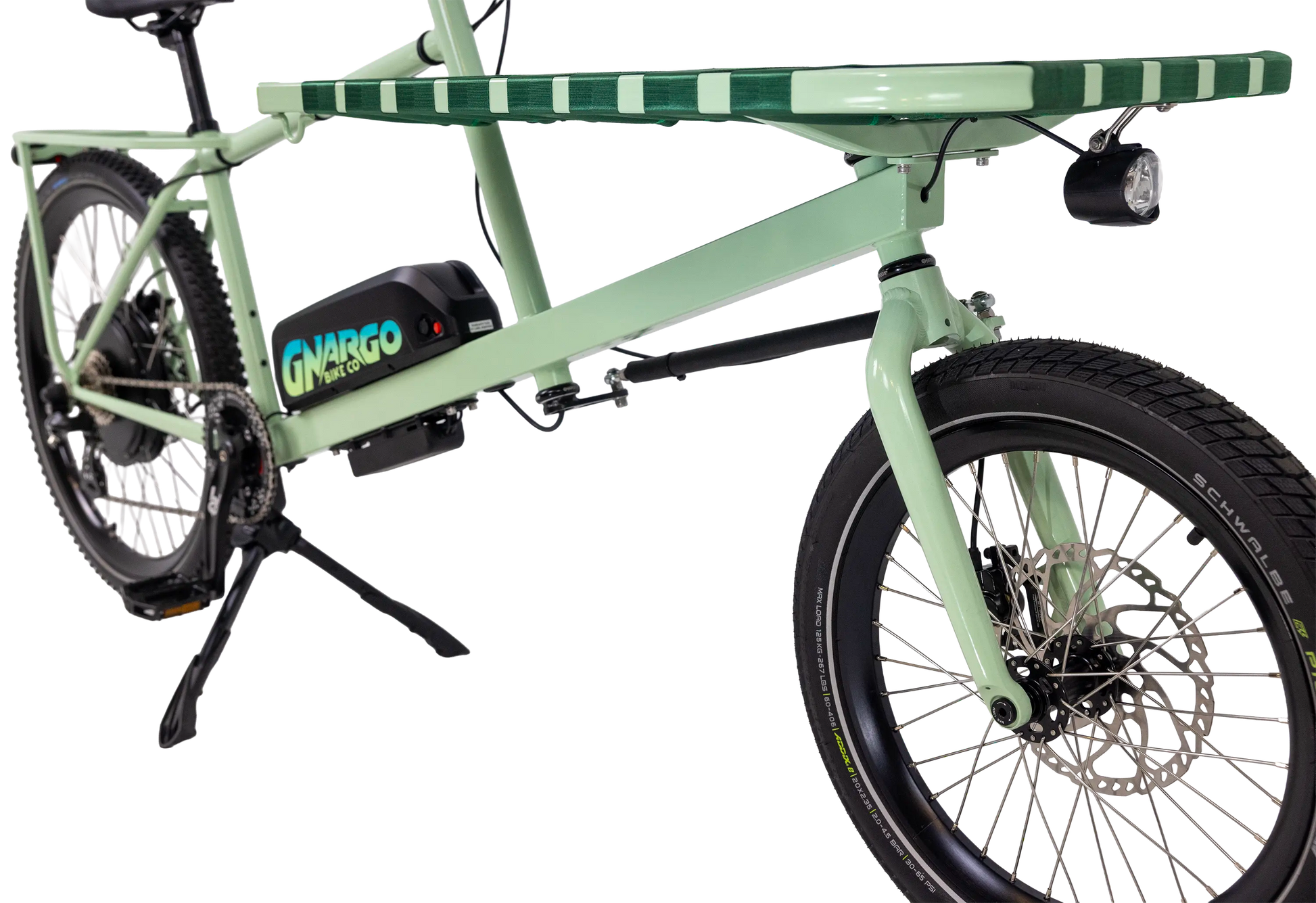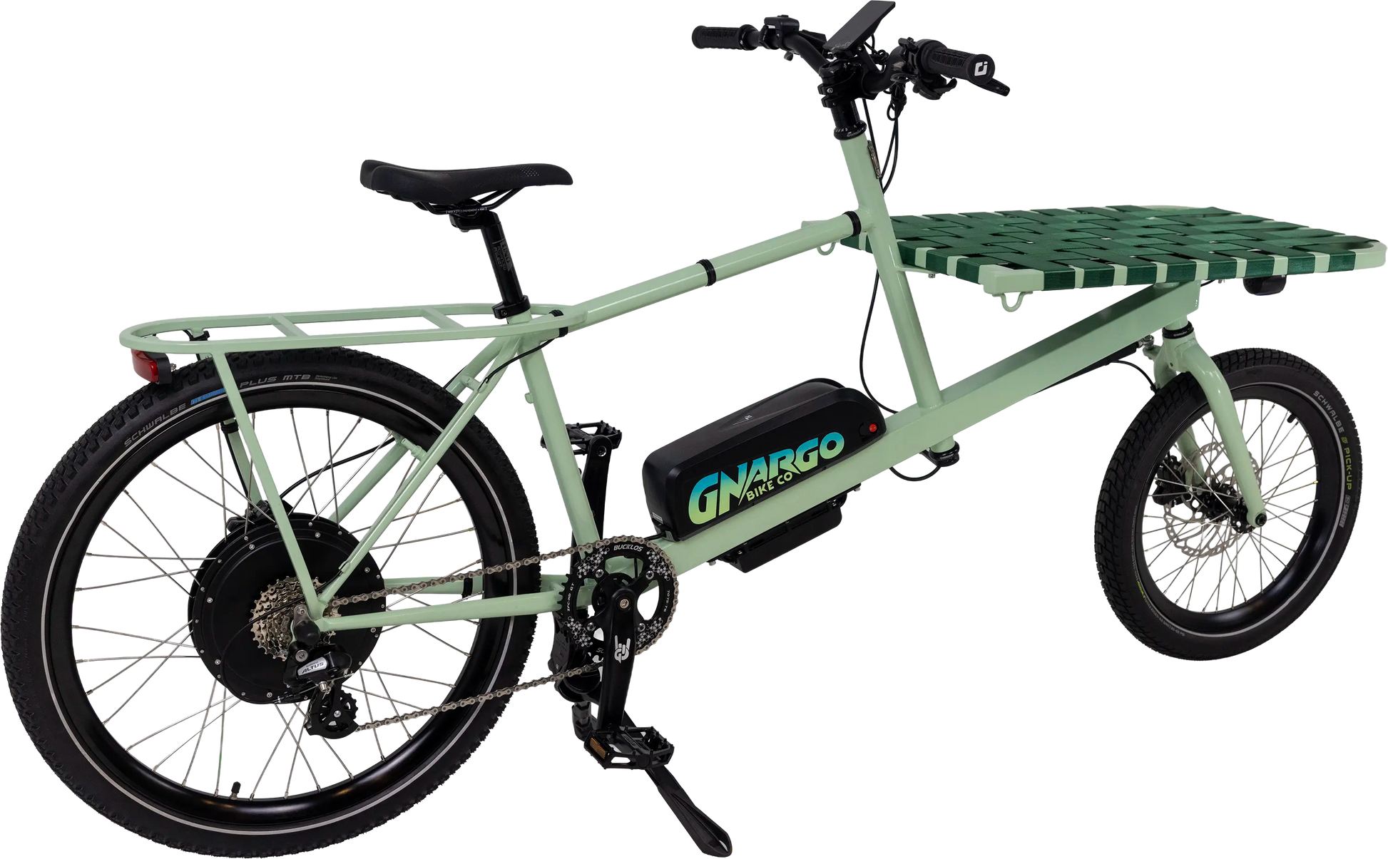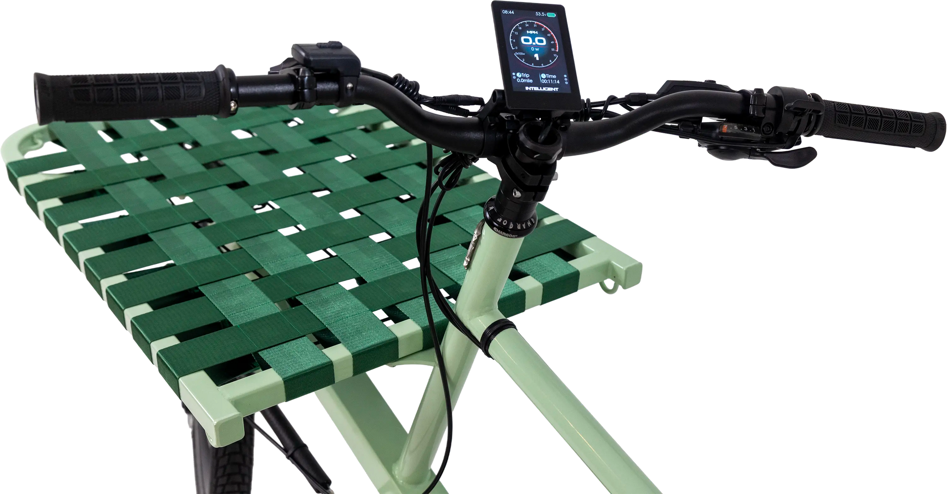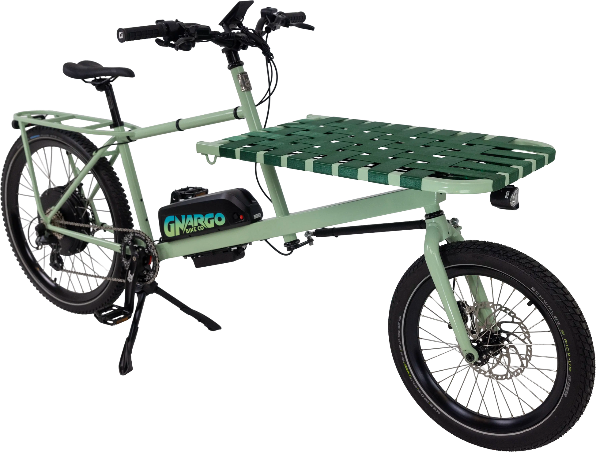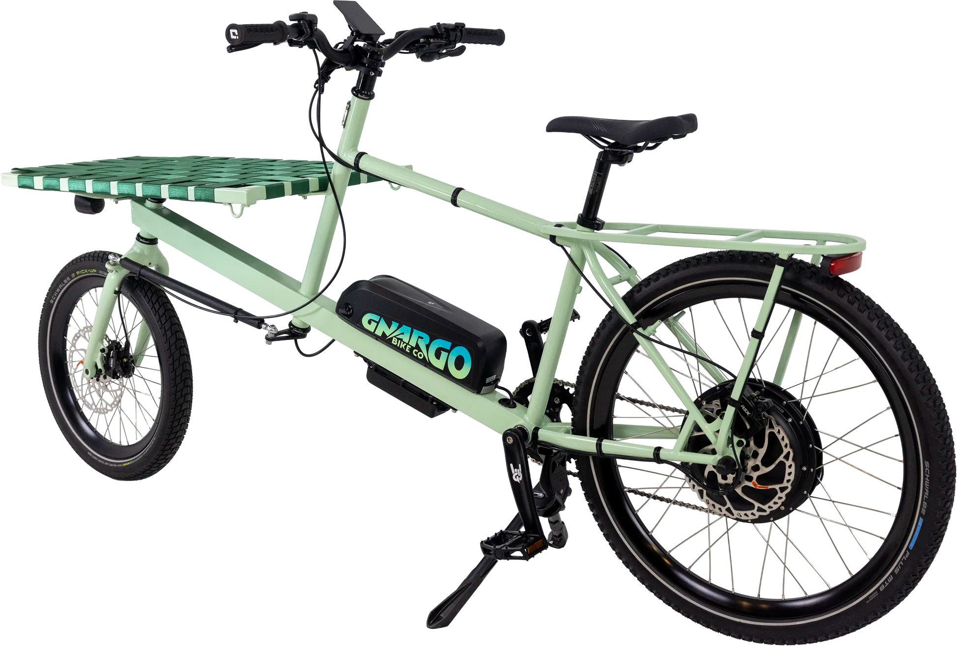 When you order, you’re not just getting a bike—you’re creating an extension of yourself. Start by choosing a custom powder coat finish, then bring your woven cargo platform to life with up to three of our 12 vibrant webbing colors. The result? A ride that’s as unique as you are.