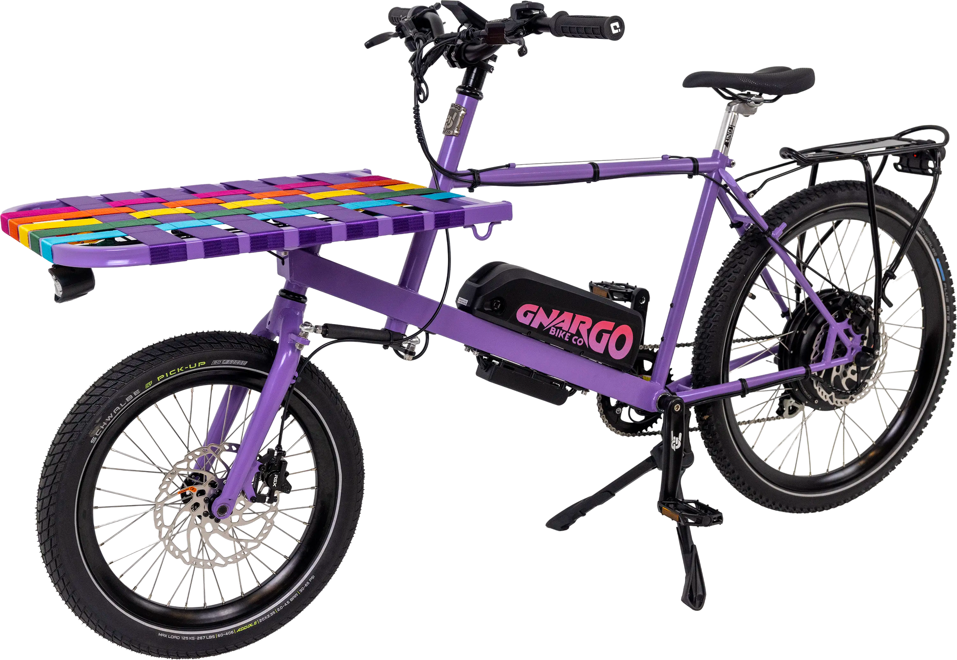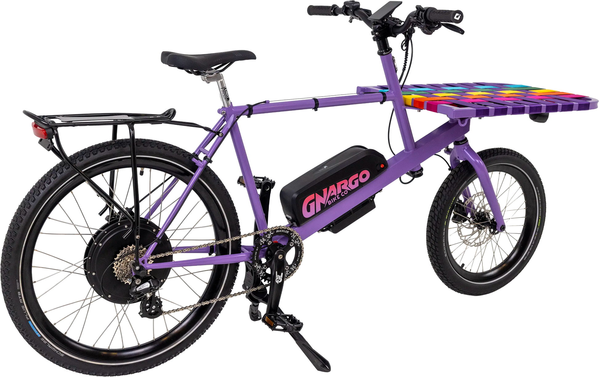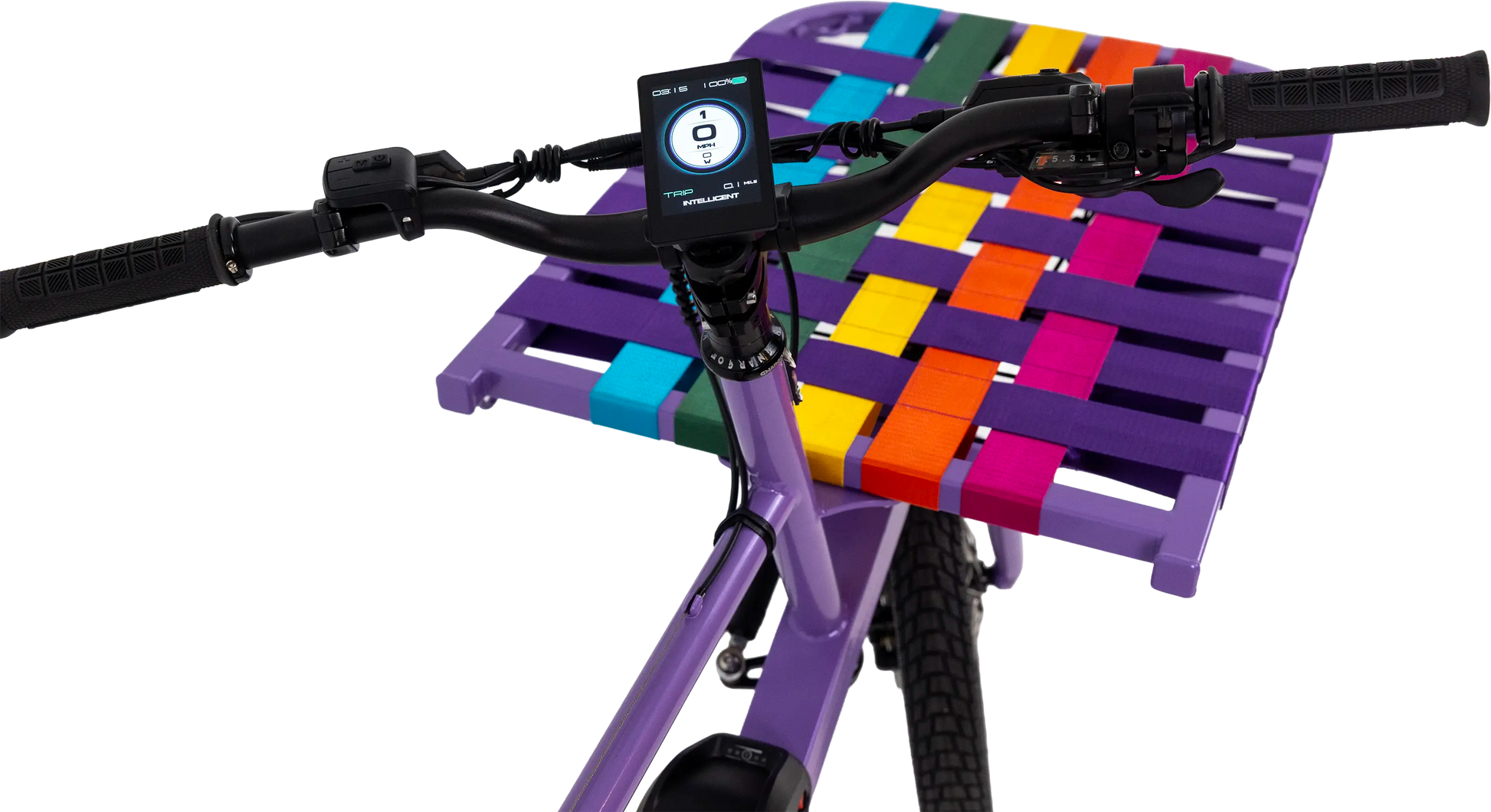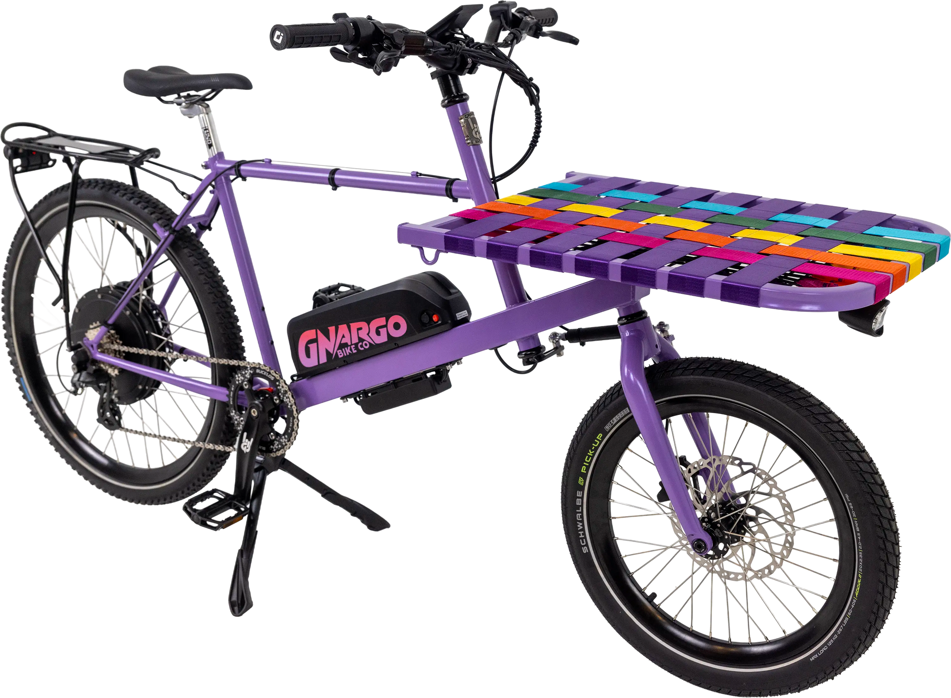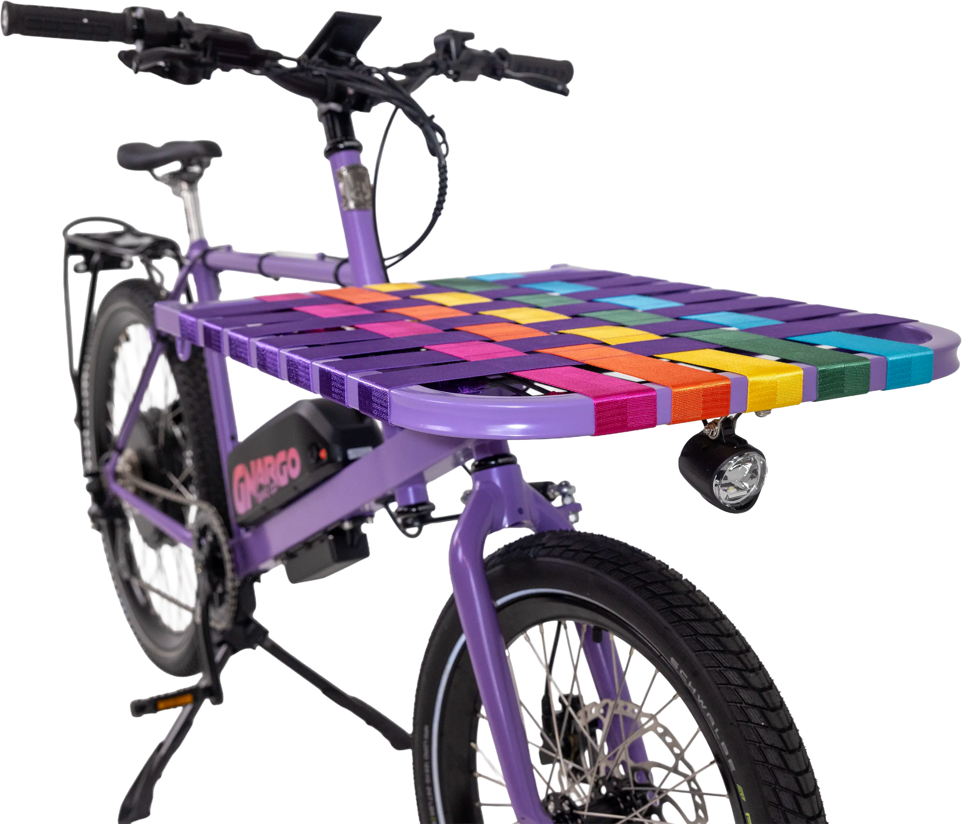 When you order, you’re not just buying a bike—you’re crafting a personal expression of who you are. Choose your custom powder coat finish, then bring your cargo platform to life with up to three of our 12 vibrant webbing colors. It’s all about making your ride uniquely yours.