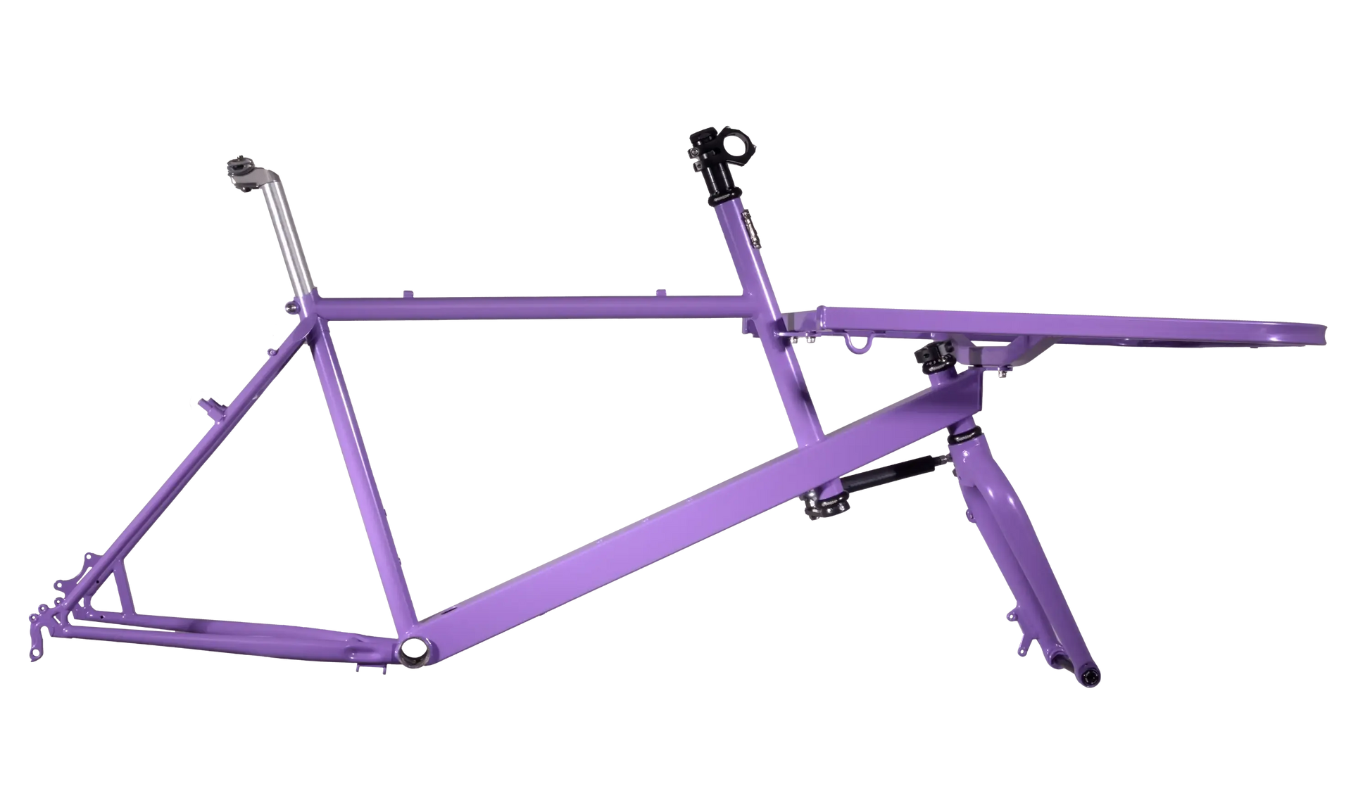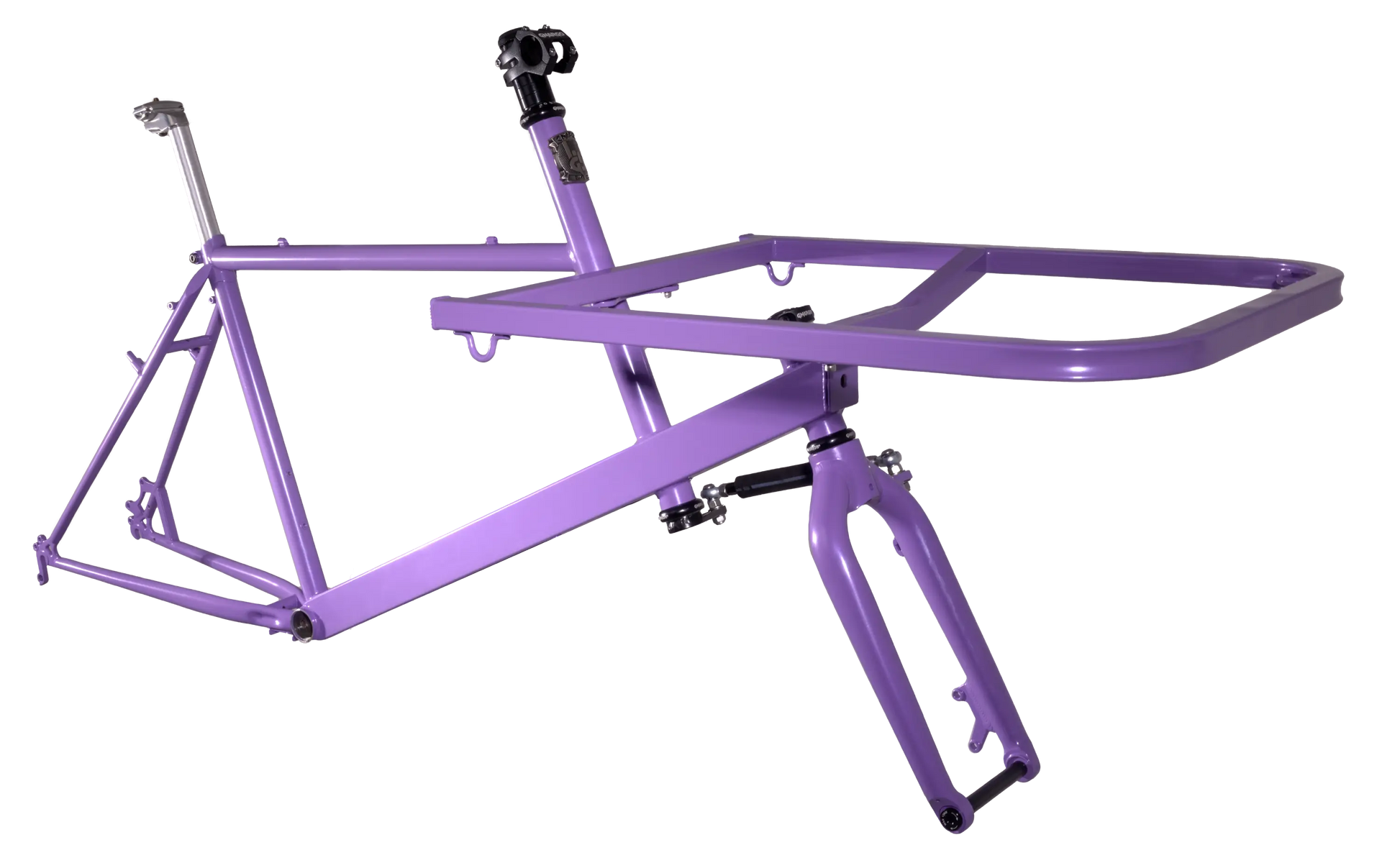 - Included components: Fork, 2-Headsets, Steering mechanism, Stem and spacers, Seatpost and seatpost clamp, Cargo rack and mounting hardware