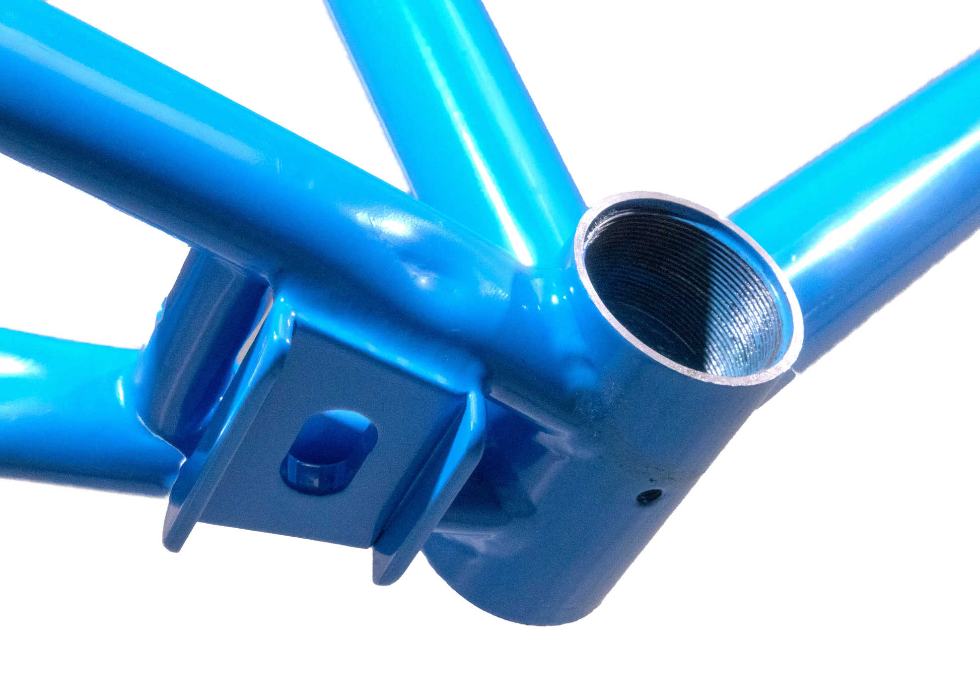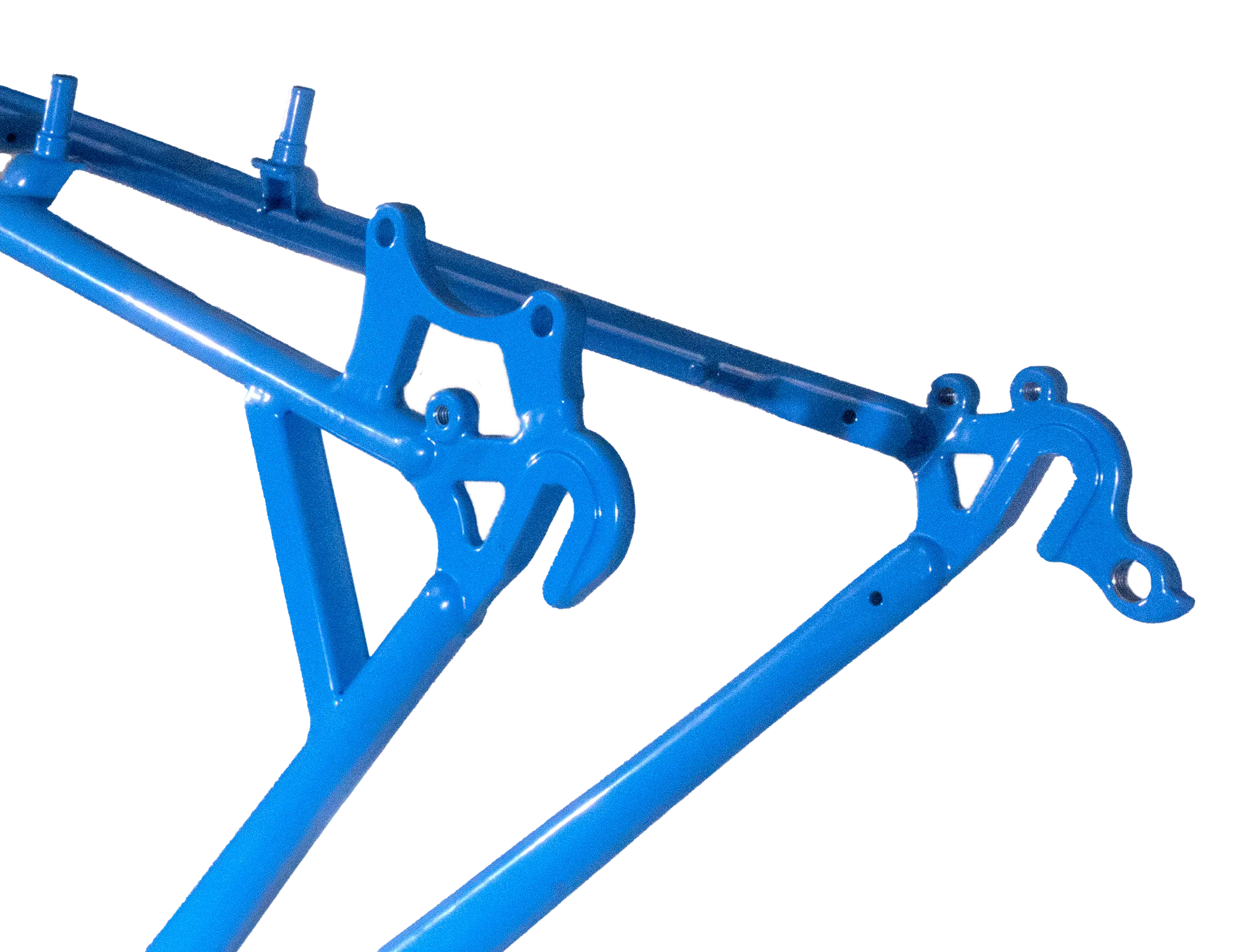 A: We pre-drill holes in the frame to support clean internal wiring for electric hub motors and controllers. If you're going electric, we highly recommend adding our custom electric controller and mounting plate for $125—they’re designed to work seamlessly with our frame and make installation a breeze.