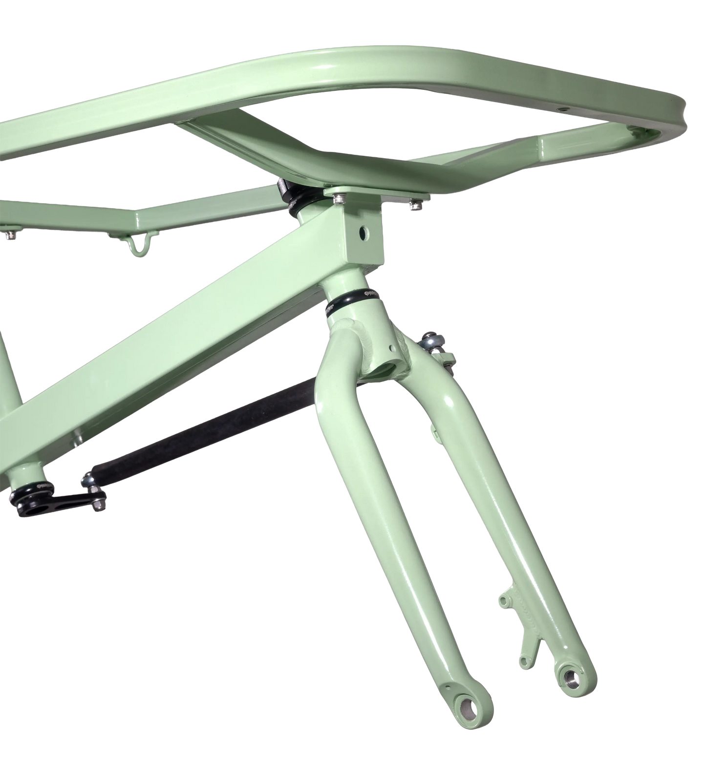 - Included components: Fork, 2-Headsets, Steering mechanism, Stem and spacers, Seatpost and seatpost clamp, Cargo rack and mounting hardware